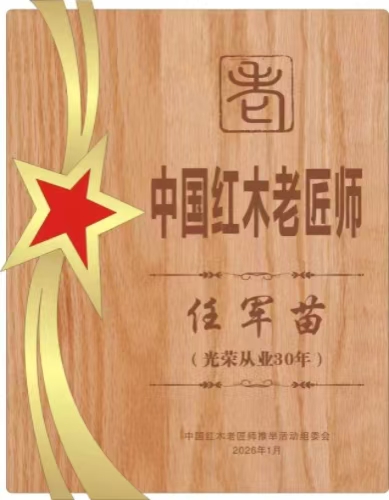 经审核,任军苗先生符合上述条件,特授予“中国红木老匠师”荣誉。
