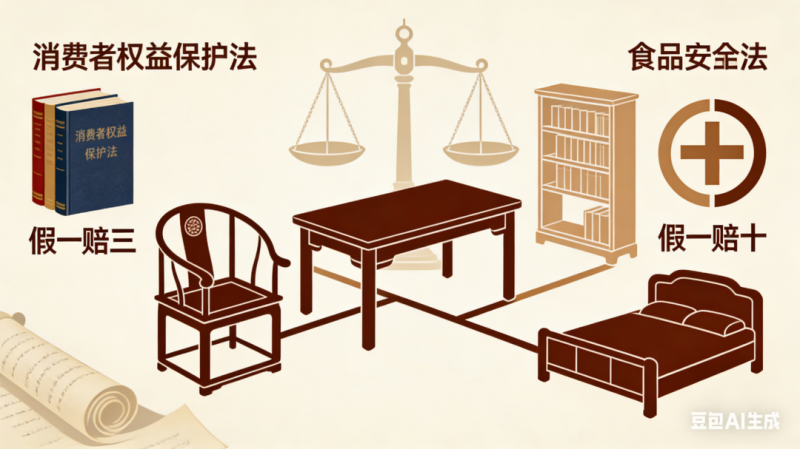在法律层面,“假一赔三”是《消费者权益保护法》为普通商品设立的底线,适用于绝大多数消费场景。而“假一赔十”原本是悬在食品、药品领域的“达摩克利斯之剑”,源于《食品安全法》对民生关键领域的特殊保护。当这套更严苛的标准被移植到红木家具行业时,其象征意义已远超法律条文本身。